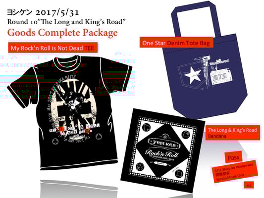 ・「My Rock'N oll is Not Dead」TEE・「ONE STAR DENIM」 TOTE BAG・「The Long & King’s Road」BANDANA&Badge・4/11 新宿ヘッドパワー「開戦前夜」より数曲スペシャルDVD!・バンドメンバーサイン入り特別PASS (予定)